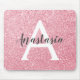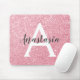Chic and glam blush pink rose gold glitter sparkles metallic mouse pad, with a large, white monogram initial and your custom name in an elegant grey script font. Personalise this trendy mouse pad with your name or monogram initial. You can change the text colour and font style and size using the customise option.