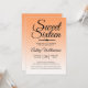 A chic tropical orange ombre design Sweet 16 birthday invitation. The bright papaya orange fades onto a white background. The text "Sweet Sixteen" in black is set in modern script. Elegant 16th birthday party invitation for a glamourous Sweet Sixteen, perfect for her, the fashionista who loves modern pattern, luxury and glam with a tropical summer beach theme. Exclusively designed for you by Happy Dolphin Studio.