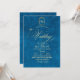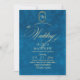Elegant stylish Turquoise and gold modern wedding invitation with an elegant handwritten font with curls and a monogram of the bride and groom. Classy and elegant, simple and modern invitation.