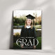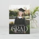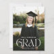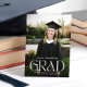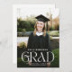 This chic graduation announcement features a vertical full frame photo and modern yet elegant typography. This is a chic and elegant design. You can customise this design even further by adding another photo or additional text to the backer. All type, including "GRAD", is completely customisable.