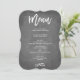 Modern and chic customisable menu with faux chalkboard background and beautiful brush script.