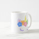 Stylised unicorn face with horn, ears, eyelashes, and flowers