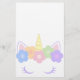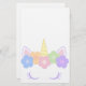 Stylised unicorn design with ears, horn, closed eyes, and flowers. Very trendy, feminine style