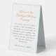 This table tent sign is the perfect size for our tables and easy to read. I also like the material it is made with and no worries about it falling or sliding. Just perfect! Everything about this card is perfect. I like that it says what we want on the front and on the back we were able to personalize a message for our guests.