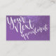 This is the perfect Appointment Card for a trendy, stylish, and modern business. This design features a simple white handwritten brush script typography on a faux printed diagonal sparkly violet purple glitter and bright violet purple ombre gradient glamourous and chic background. These cards will add that personal and professional touch to your business and career advertisement.
