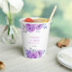 Elegant and simple Bridal Shower paper cup featuring purple rose flower and vibrant calligraphy text.