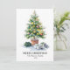 Celebrate the season with this elegant and timeless holiday card featuring a beautifully illustrated watercolor Christmas tree adorned with glowing lights and classic ornaments. Set against a clean white background, the design exudes warmth and charm, perfect for spreading holiday cheer to family and friends. Personalise with your family name and year to create a truly unique keepsake.
