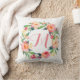Chic Watercolor Floral Wreath Monogram Cushion
