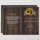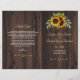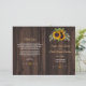 Rustic country wedding card design featuring watercolour sunflowers bouquets, a semi-transparent shape with a textured frame, arrows with hearts and sunflowers as divider, all on an old barn background. Use Customise tool to add your info. Matching items can be found in my Rustic Sunflowers Old Barn Collection.