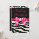 Chic Wedding Reception Zebra Stripes Hot Pink Bow Invitation