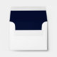 Chic wedding envelope is completed in crisp white on the outside and dark navy blue on the inside! This solid colour envelope has been designed to coordinate our elegant style items that are labelled as Elegant Dark Blue Border. Use the template to customise with your return address in the coordinating design. E-mail invitationsuites@gmail.com with questions or custom requests.