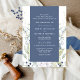 Delight friends and family with this beautiful wedding invitation. Design with exquisite watercolor greenery and white and blue flowers framing an elegant band of blue colour showcasing your wedding details. Elegant and classic style with traditional wording with parents' names. Back in the same blue tone as the band on the front. Also available with a back in dusty blue, or in white with floral. Part of our "Elegant Bliss" collection with a variety of coordinating invitations, insert cards, RSVP cards, mailing accessories, save the dates, thank you cards, and event signs and products.