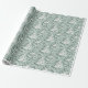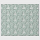 Delicate patterns of white Christmas trees and swirling designs cover soft green wrapping paper, perfect for adding a festive touch to holiday gifts and decorations this season.