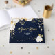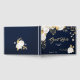 beautiful elegant white flowers with some gold leaves chic navy blue guest book.