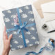 Chic White Floral Pattern Dusty Blue Wrapping Paper