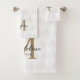 Chic White Gold Anahaw Leaf Script Monogram Bath Towel Set
