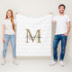 Chic White Gold Anahaw Leaf Script Monogram Fleece Blanket