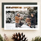 This elegant and rustic Christmas card design captures a serene winter moment, featuring a family surrounded by a snowy landscape. The white and green colour palette adds a modern yet cosy touch to the festive theme. The front features a cheerful "We Wish A Very Happy Christmas" in delicate script, while the back continues with a seasonal message. Perfect for those looking to showcase a chic, minimalist family photo, this card blends simplicity with warmth. The double-sided layout provides ample space for a personal note, making it a timeless choice for sharing holiday cheer.
