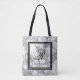 Chic white marble stone texture custom monogram tote bag. Classy totebag printed on both side with your text. Elegant design for wedding party, bridal shower, school, office etc. Luxurious template with personalised monogrammed letter and stylish border. Great for bride, bridesmaids, entourage, team etc. Upload your own background optionally.