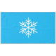 This festive seasonal design features a single large white Nordic snowflake centred on azure blue background.