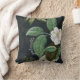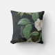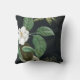 Chic White Peony On Black Botanical Personalised Throw Pillow. Striking black and cream floral illustration. Your name can be easily personalised with your choice of fonts using Zazzle's deign tools. (Original graphic courtesy https://www.freepik.com/rawpixel.)