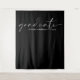Chic minimal black backdrop and photo wall prop for your graduation party featuring "graduate" in a modern white script and the graduate's name and class year in simple white typography.