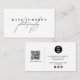 A beautiful design incorporating your business logo and your QR Code. This elegant white signature script business card is ideal for all types of businesses. A simple and professional way to introduce your business. Social media icons included in the design of this business card for you to use. Personalise your details to create your own unique business card.