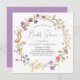 An elegant bridal shower invitation featuring "Bridal Shower" showcased in a chic lavender purple script, and a boho-inspired wreath of purple, pink, peach and yellow wildflower watercolors. Personalise the bride's name and shower details in simple lavender and grey lettering.