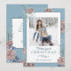 Elegant and chic watercolor style pine cones and fir branches on dusty blue background with photo and text templates.