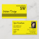 Chic Yellow Black Stripes with Monogram and Photo Business Card