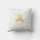 Chic Yellow & Grey Marble Name Monogram Cushion