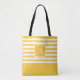 CHIC YELLOW WHITE STRIPE Square Letter Monogram Tote Bag