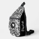 Chic black and white zebra pattern is printed on the front of this sling bag with your name on the side and your monogram initial on the front. Create for yourself or give as a gift.
