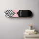 Get your fashionista on with this chic and stylish animal print skateboard. This fashion accessory with a trendy black and white zebra print and a soft feminine light pink ribbon tied into a cute girly bow can be personalised by adding the name of your teen girl. Flat printed image, not actual ribbon. Original Art copyright of ©OhSoGirly