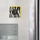 Yellow initial emblem over stylish zebra print.