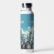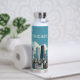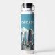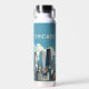 Chicago water bottle featuring the landscape and skyline of Chicago, Illinois. Modern design. Custom text. Change the text on the water bottle or leave as is. Use the template to create your own Chicago skyline water bottle.