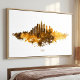 Art print of the Chicago Skyline composed of landmark buildings with City and State name. Rust Orange watercolor effect on white background.