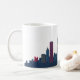 Modern and flat illustration featuring Chicago skyline with silhouettes of its classic buildings and cultural landmarks.