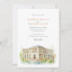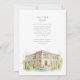 Invite your guests to a sophisticated city celebration with this beautiful watercolor wedding invitation, showcasing the magnificent Chicago Cultural Centre. The artwork elegantly captures the classical architecture of this historic landmark, rendered in a soft, refined watercolor style that highlights its grandeur and intricate details. The building is depicted in warm creams, beiges, and light browns, with a distinguished grey-blue roof. Artistic representations of foliage gracefully frame it: on one side, slender branches with touches of autumnal orange, yellow, and red leaves, and on the other, delicate green leafy sprigs. Lush green bushes adorn the base. This invitation is perfect for couples seeking a classic, cultured, and urban wedding aesthetic. The front elegantly presents your wedding details, while the reverse side offers "The Finer Details" for guest information. The overall colour palette combines stately creams and beiges, architectural greys and blues, with fresh greens and warm autumnal accents.