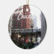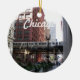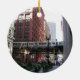 Round ornament that features a photo image of downtown Chicago and its famous elevated commuter train. Image is printed on one side only. Select your ornament style. Makes a great travel souvenir!