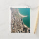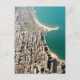 This is a postcard featuring an aerial photo of Chicago, Illinois.
