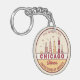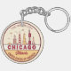 Chicago minimalist, colourful art design featuring monuments and landmarks of the city in Illinois.