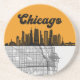 The city skyline of Chicago, Illinois including landmarks with the map of Chicago underneath.