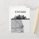 The city skyline of Chicago, Illinois including landmarks with the map of Chicago underneath.