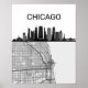 The city skyline of Chicago, Illinois including landmarks with the map of Chicago underneath.