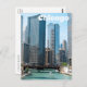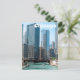 Welcome to Chicago, Illinois! This fun post card features an image of the Chicago river flowing through the city with the bold Chicago skyline in the background.