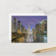 Anyone would love to receive this travel postcard featuring a beautiful photo of the Chicago River and city skyline in Chicago, Illinois at night!