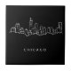 This design features a hand drawn sketch of the city of Chicago skyline on a dark background.