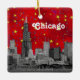Chicago Skyline Etched, Red Starry Sky Ceramic Ornament