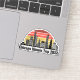Personalized Chicago Illinois vacation laptop sticker with a silhouette of the city skyline in front of a cool sunset. Cool trip keepsake souvenir for a family trip.